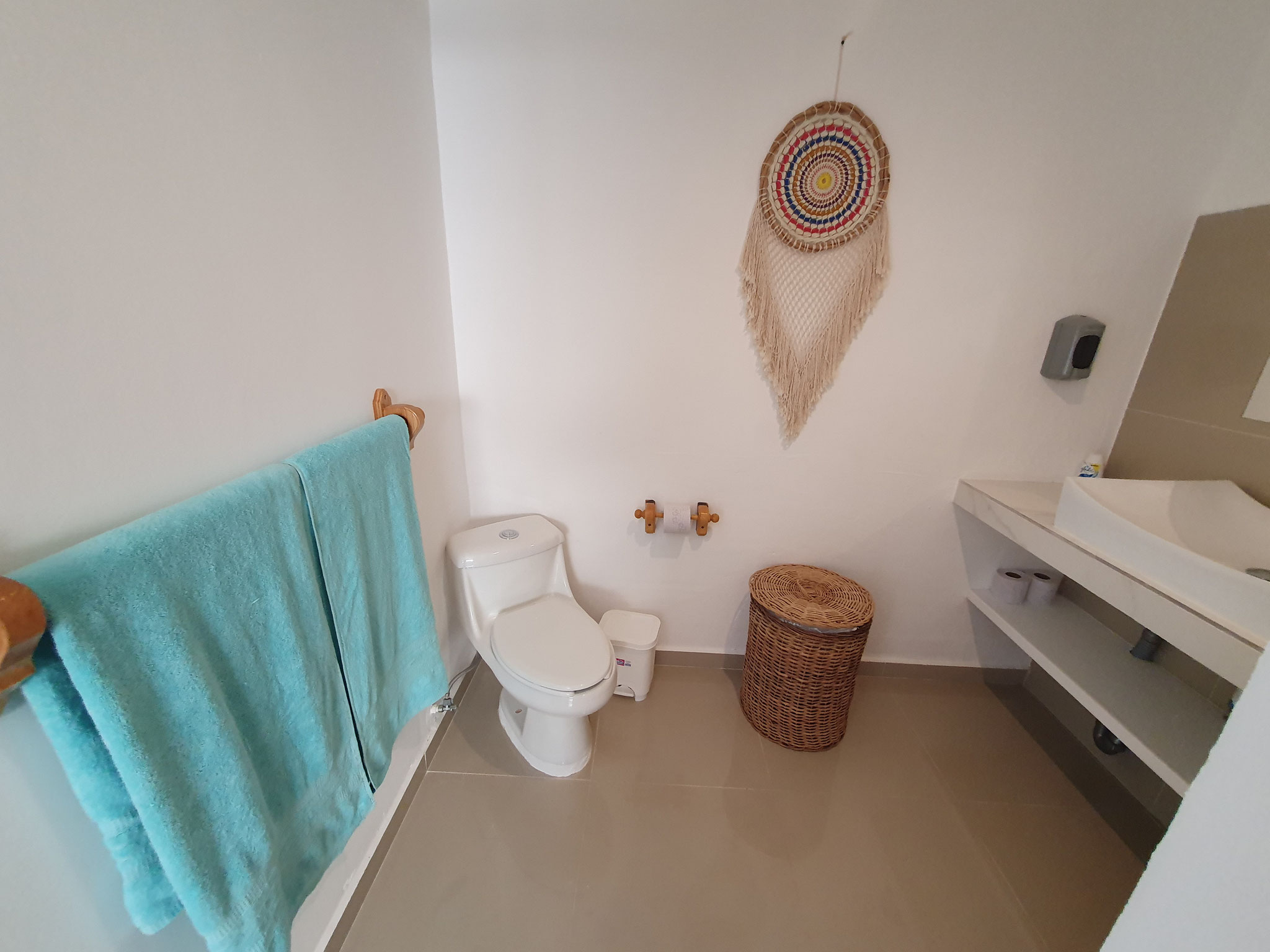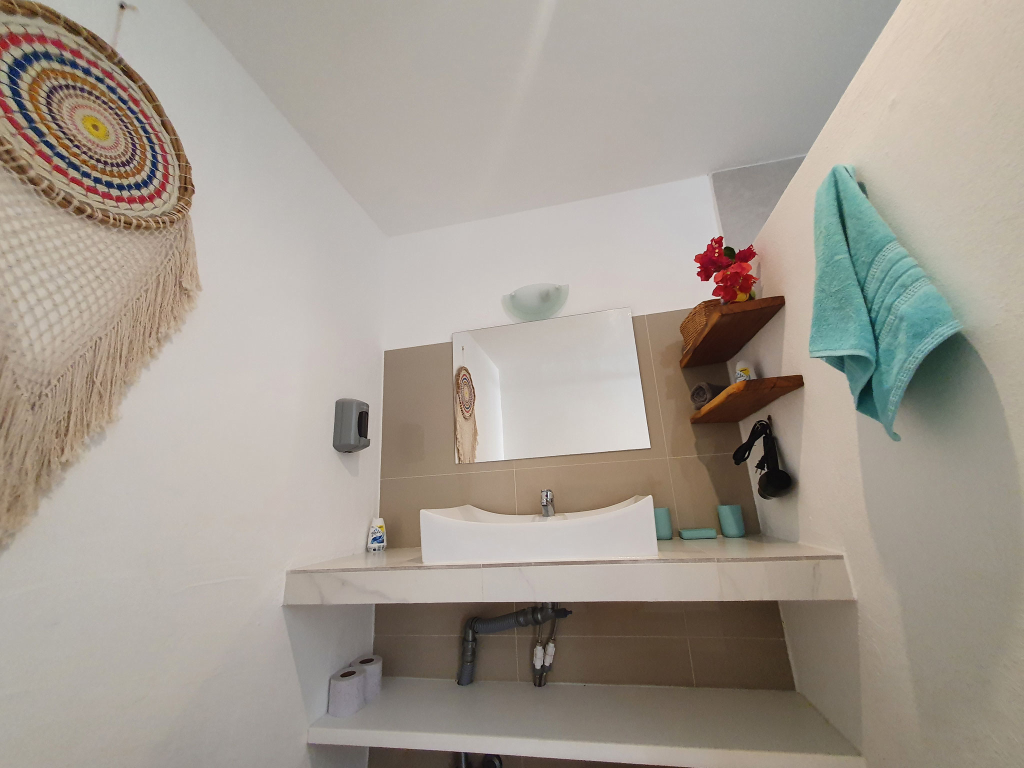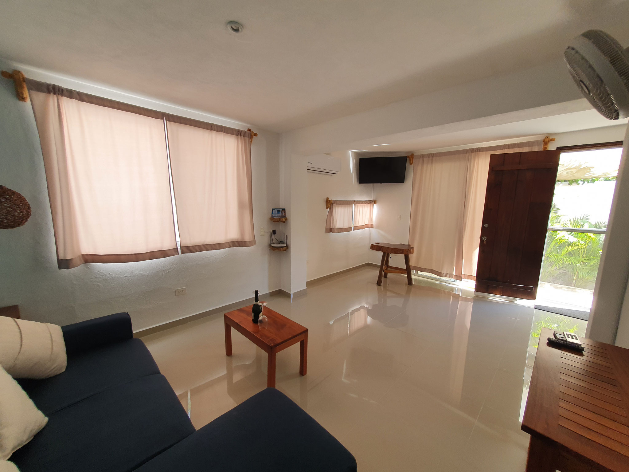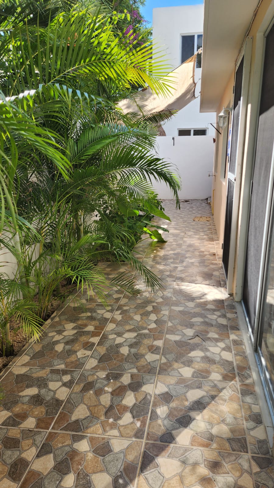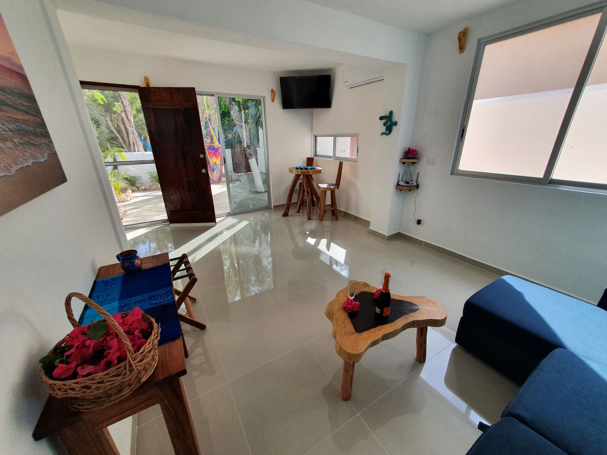 Die beiden privaten Palapa-Häuser mit rustikalem Strohdach im typisch karibischen Stil sowie das Studio-Apartment im 1. Stock und auch die Garten-Apartments liegen ruhig, inmitten auf einem privaten und abgeschlossenen Wohngebiet mit Einzelhäusern und Apartments. Viele kleine Sand-Schotterwege durch den Dschungel laden zum Spazieren gehen oder Sport treiben ein. Hier kann man ab und zu sogar kleine Äffchen, Papageien, karibische Vögel und Leguane beobachten
