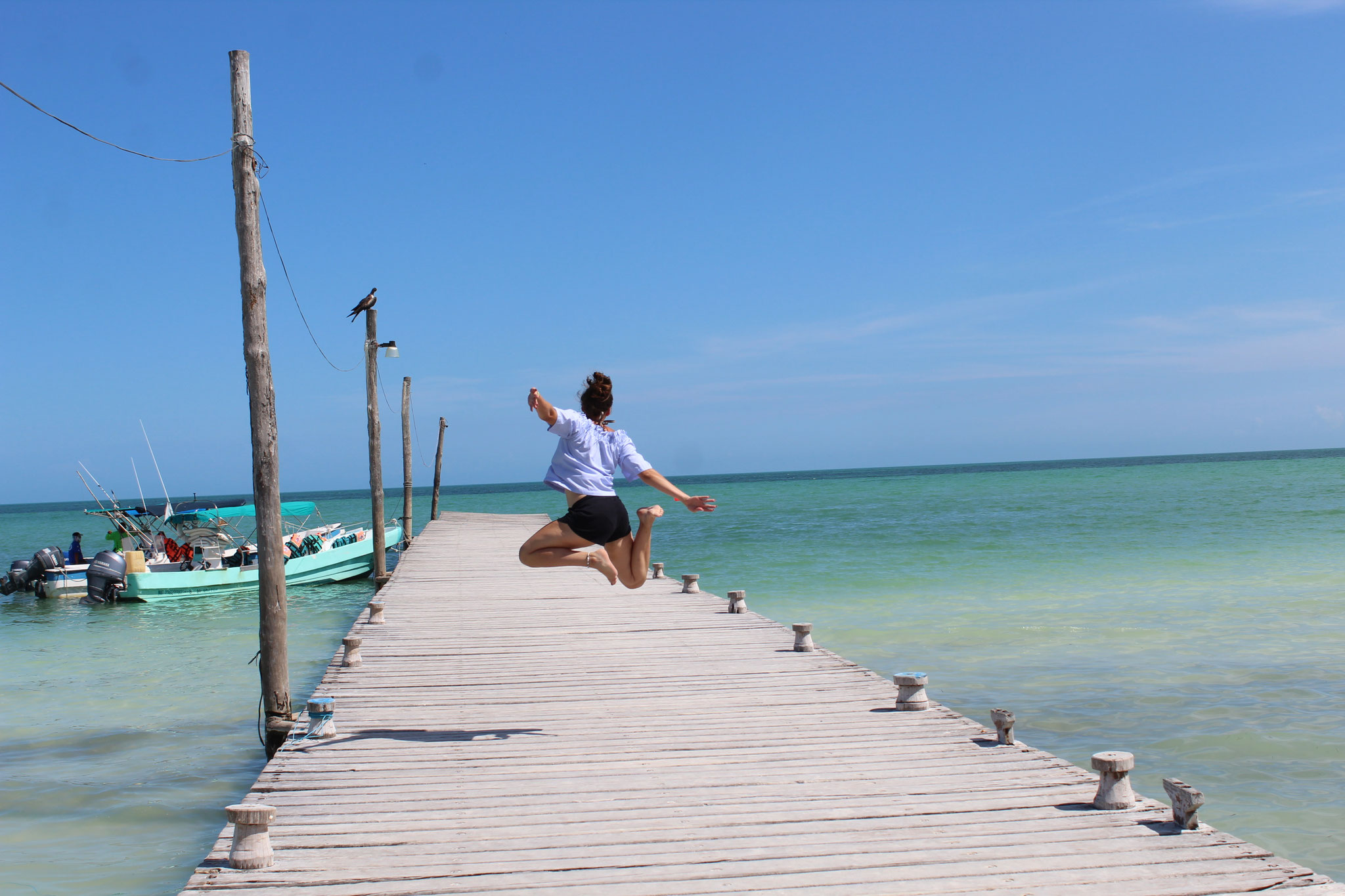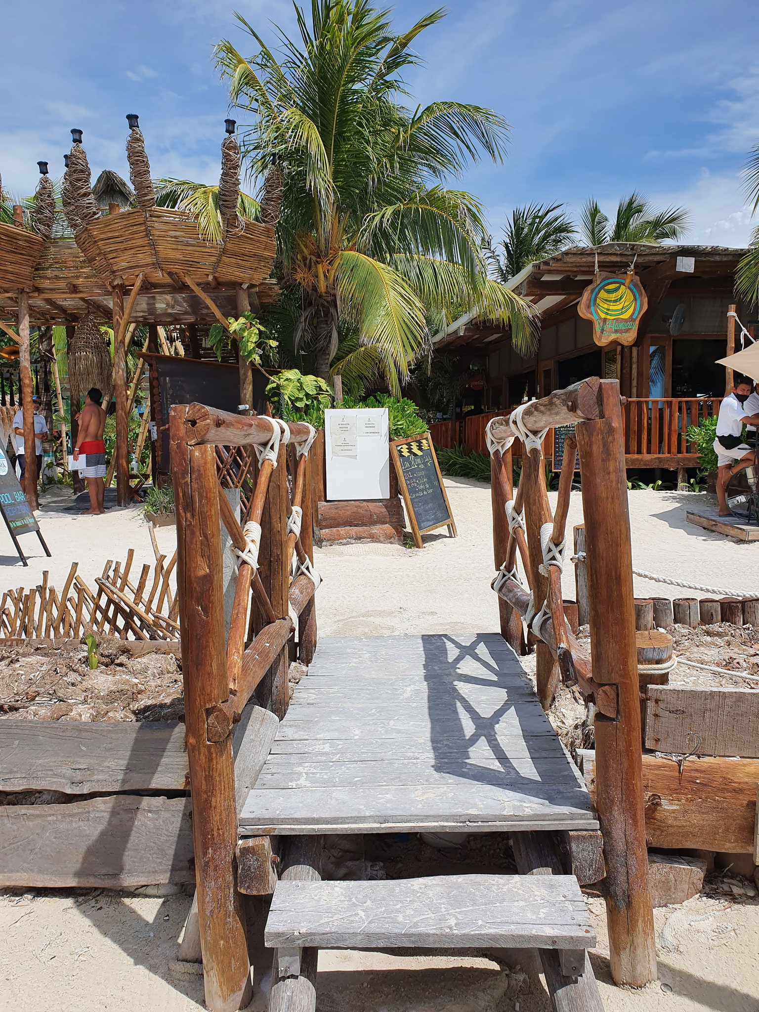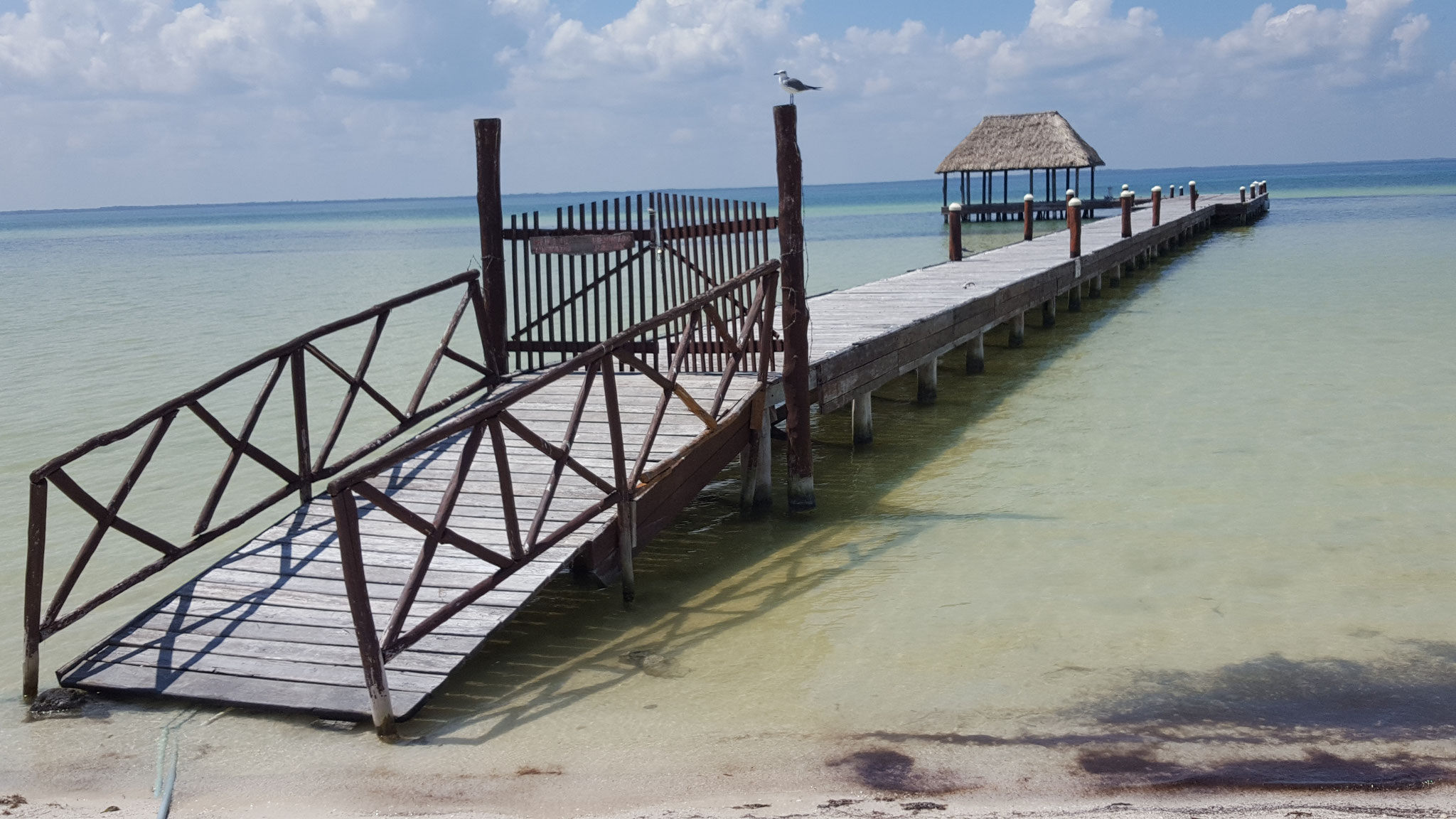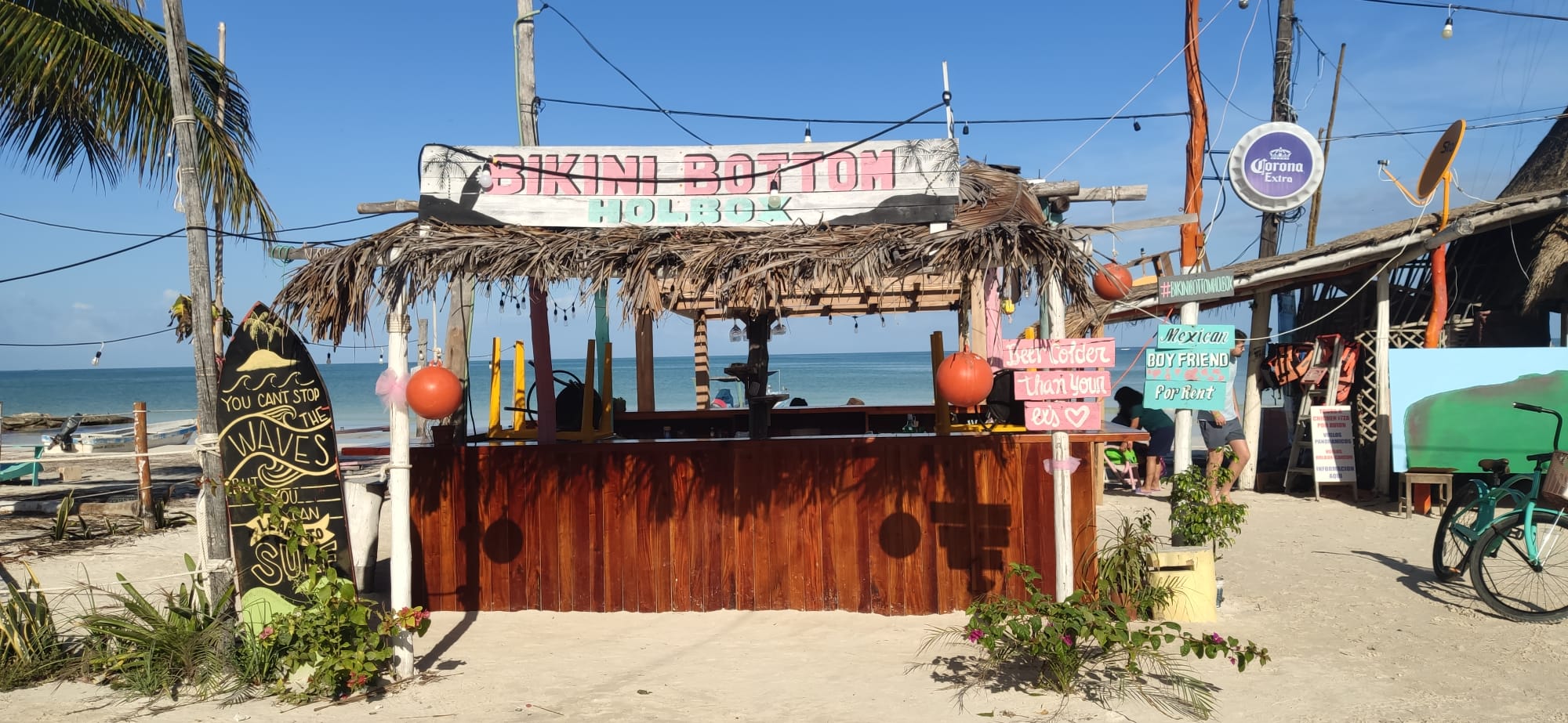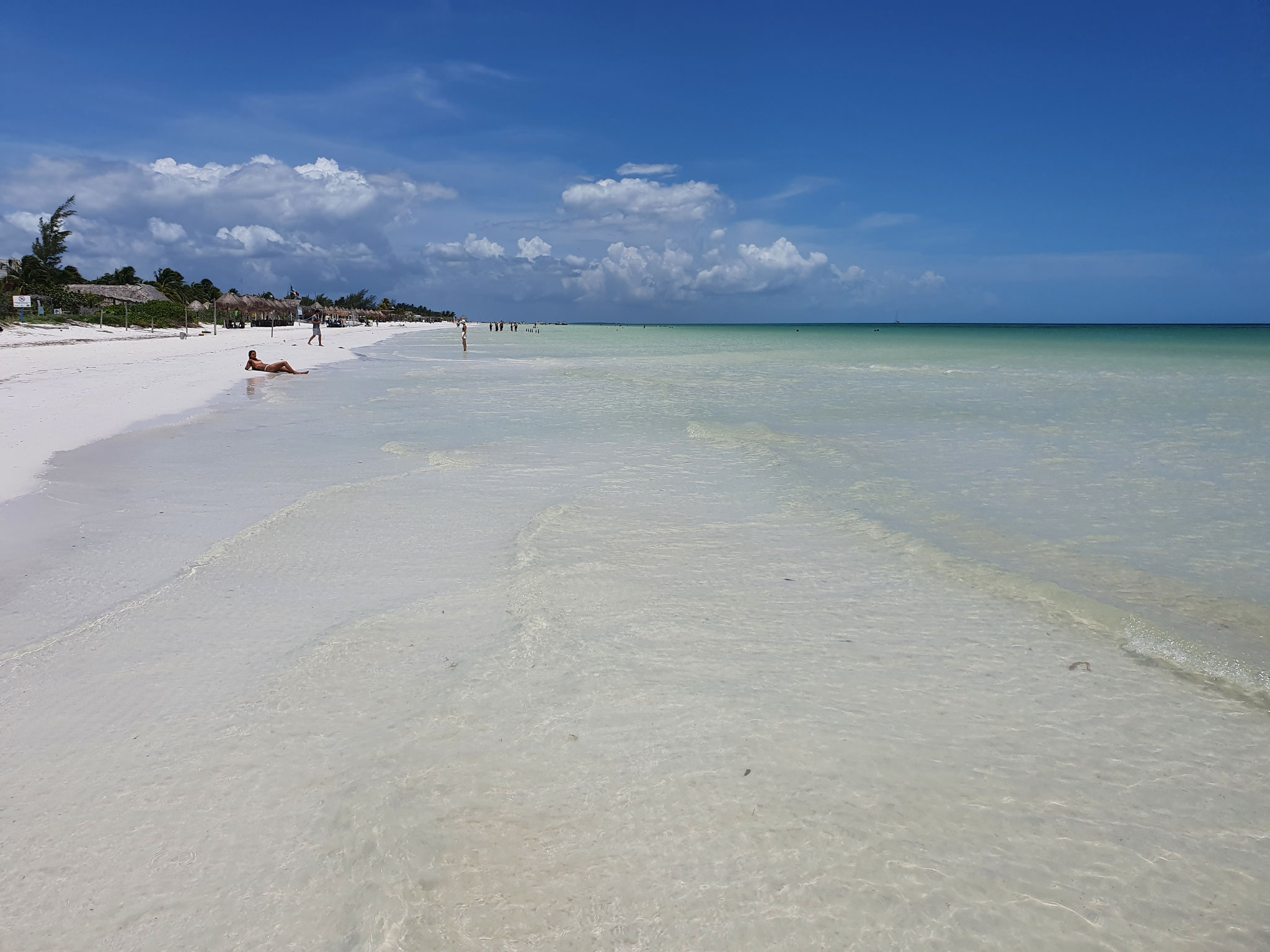 Wir erreichen die Insel früh am Morgen und nutzen die ruhige Stimmung, um die ersten Erinnerungsfotos an einem der beiden berühmten Holbox-Schilder zu schießen – ein Must-Have für jedes Fotoalbum.