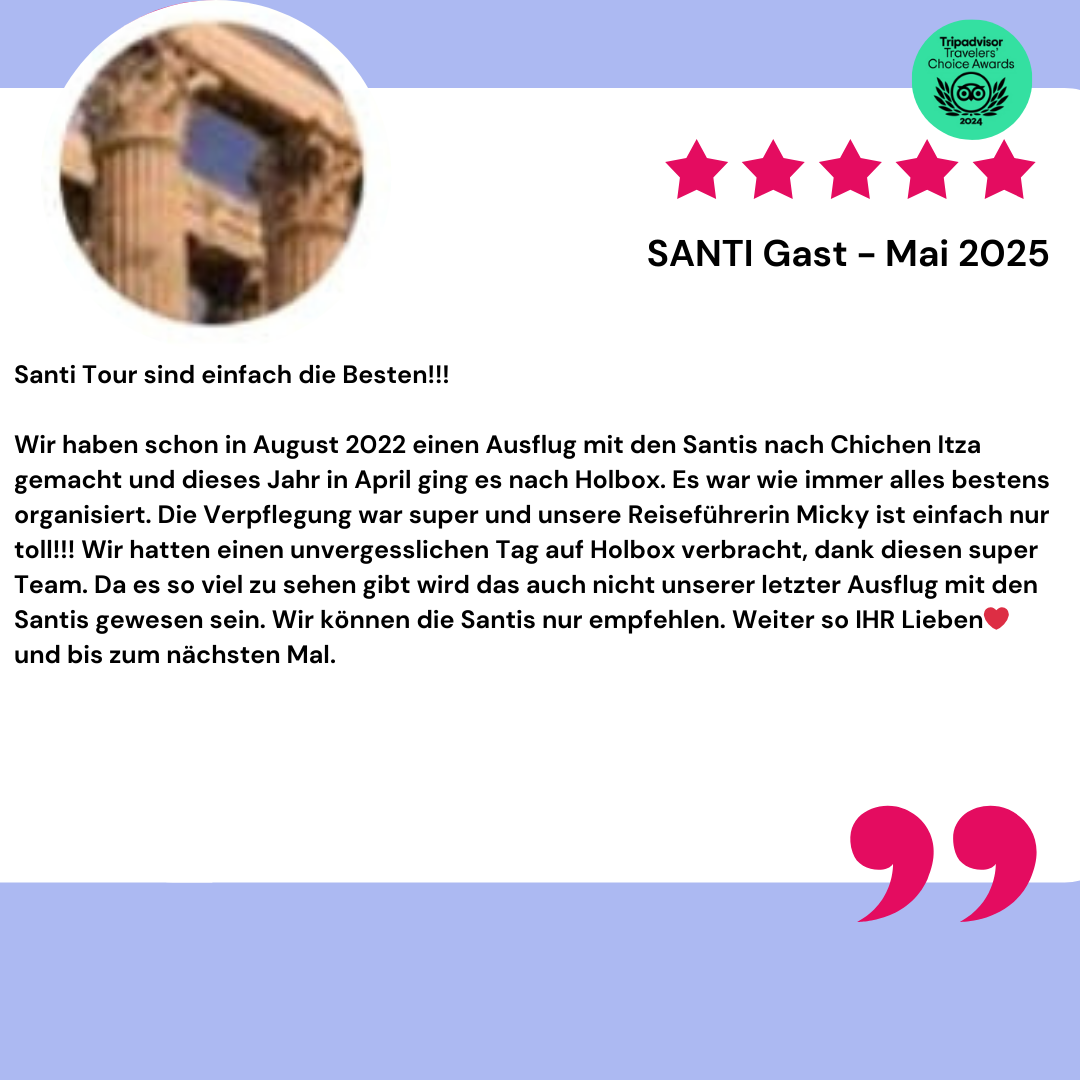 Wir starten den Tag mit einer unvergesslichen Bootstour zur idyllischen Passionsinsel, gefolgt von einem Abstecher zur traumhaften Insel Holbox.