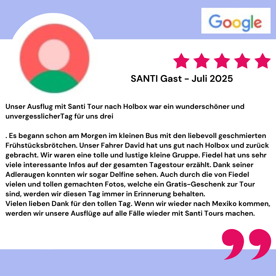 Rückfahrt nach Playa del Carmen: Nach diesem entspannten, aber auch erlebnisreichen Tag bringt uns das Boot zurück nach Chiquilá. Von dort fahren wir im Minivan zurück nach Playa del Carmen. Ein Urlaubstag, den ihr garantiert nie vergessen werdet!